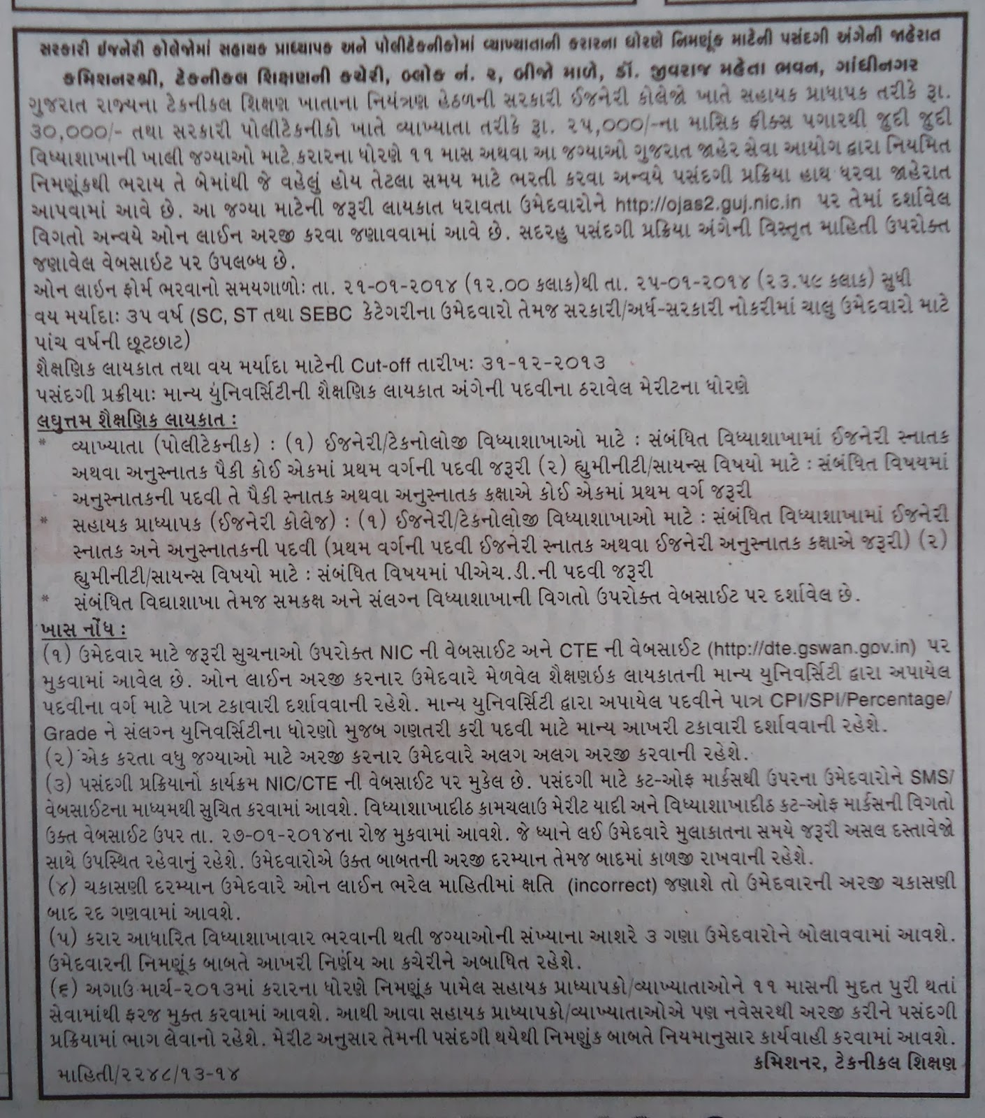 TALATI(1500 POST ) FORM FILLUP DATE.16.01.2014 TO 30.01.2014..
