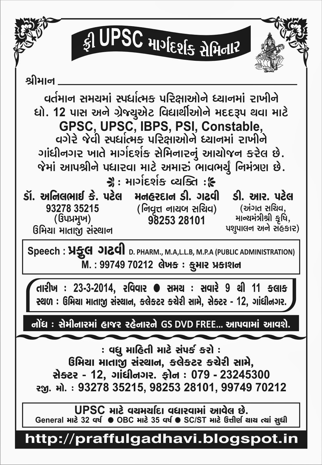 UPSC-GPSC FREE SEMINAR IN GANDHINAGAR MORNING 9 TO 11